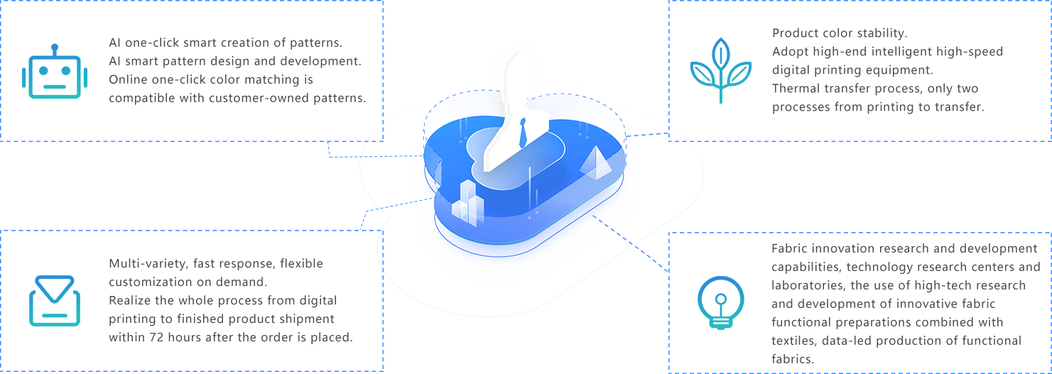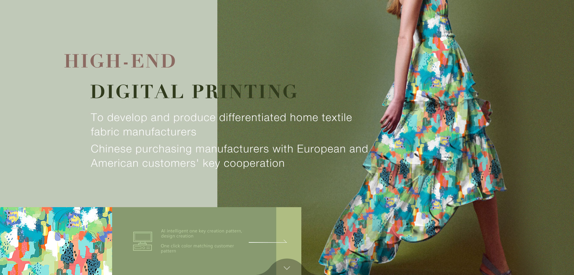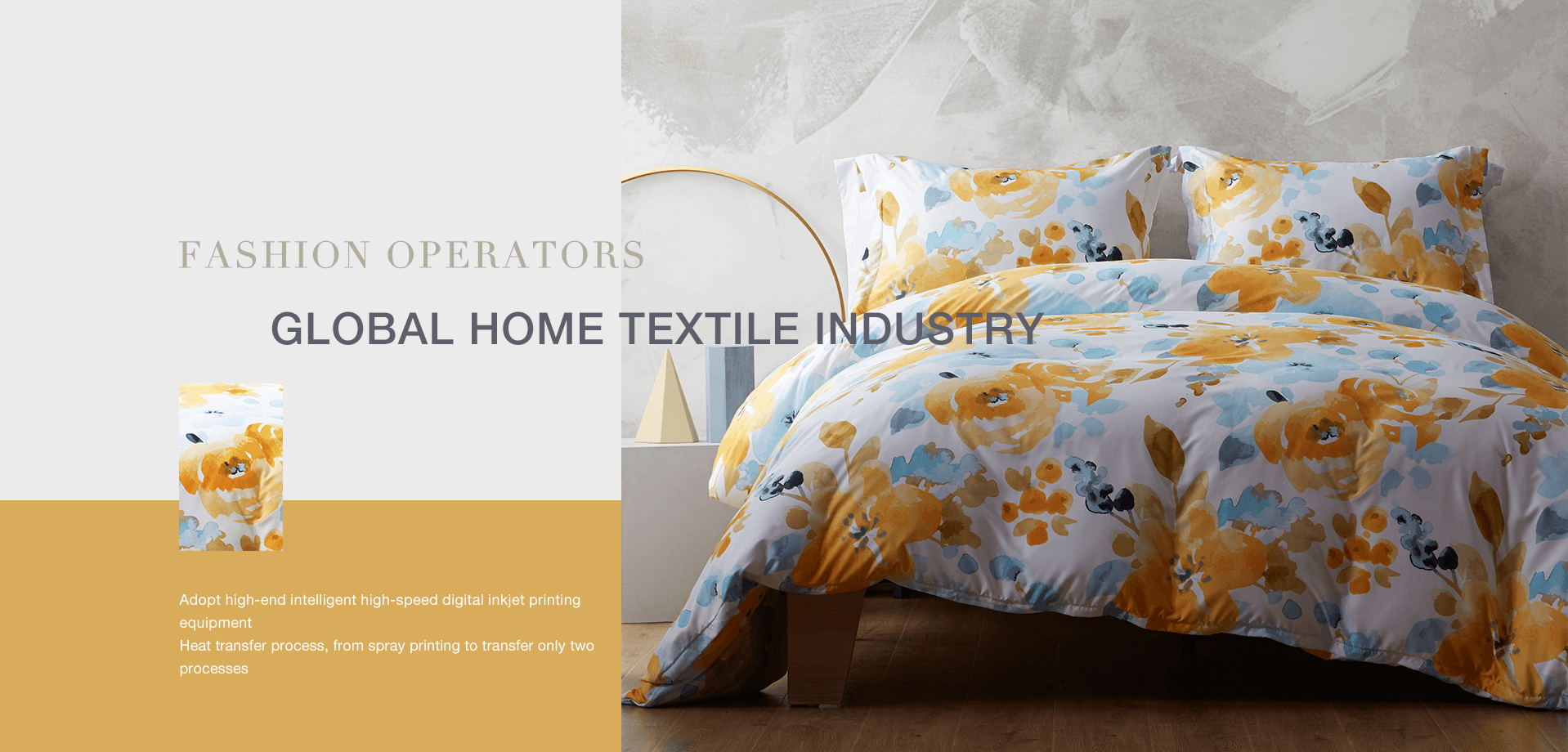 The company has been committed to the home textile industry for 13 years. Products are exported to Europe, America, Southeast Asia and other countries and regions. The company insists on innovation and the courage to innovate, transforming from a traditional home textile enterprise to an intelligent manufacturing home textile enterprise. The total investment is 320 million yuan. There are 300 employees. The building area of smart green digital printing is 56,000 square meters. The digital printing workshop is 7,500 square meters. The home textile product production workshop is 30,000 square meters. The annual output is 10 million sets of fashion digital printing. 60 million meters of chemical fiber clothing Fabric. Set design intelligence, equipment digitization, production management information, a green and environmentally friendly fast fashion digital printing manufacturer.