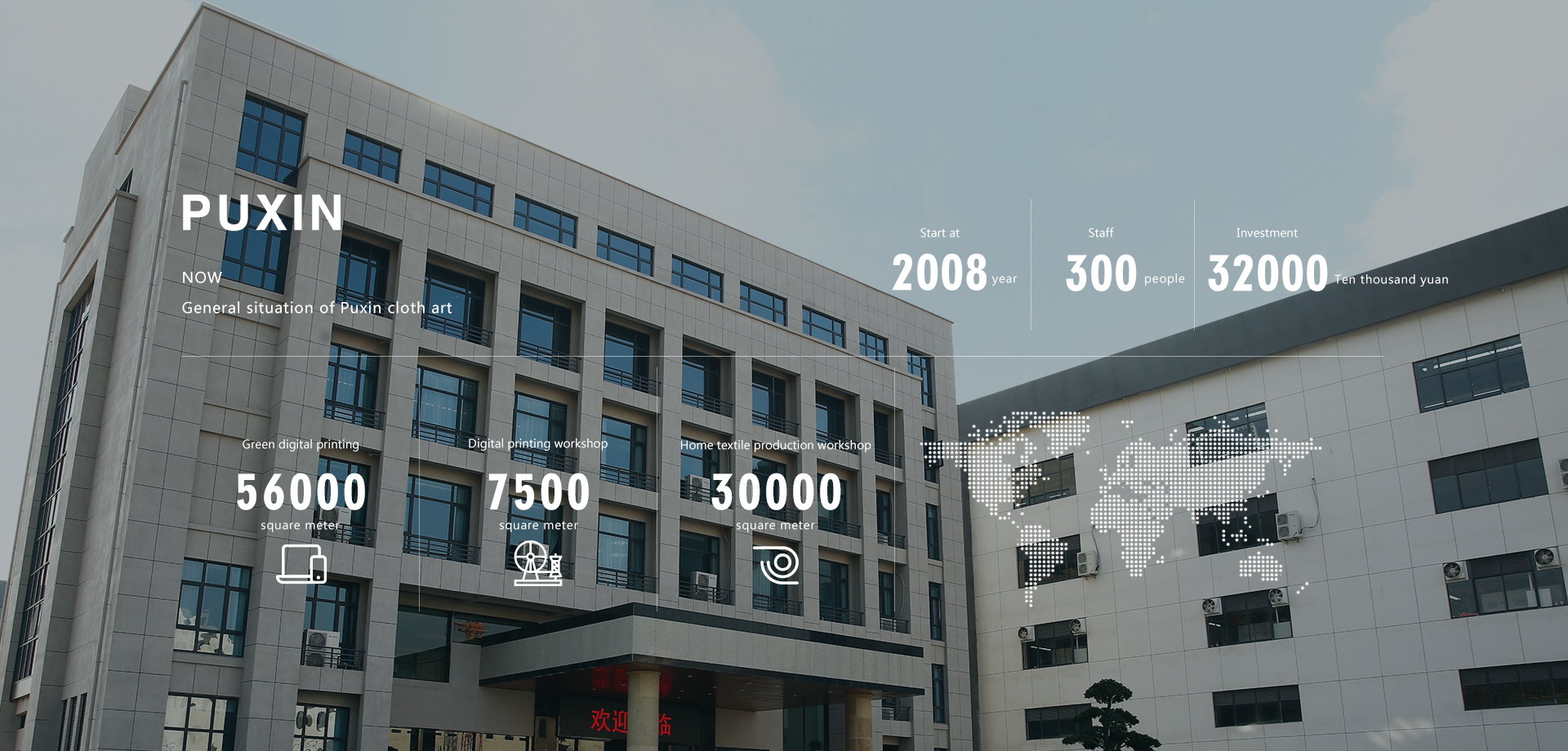 Huzhou Puxin Home Textile Co., Ltd. was established in December 2008 in Jiapu Town, Changxing, Huzhou City, Zhejiang Province. It is located in the center of the Yangtze River Delta region with the most economic vitality in China, and is the core center of China's textile industry. The company focuses on the development and production of digital printing fashion home textiles, chemical fiber clothing fabrics and chemical fiber bedding fabrics. Products are mainly self-designed and marketed, with unpaid sample customization, multiple designs, small batches, quick response and zero inventory, flexible customization on demand, and the entire process from digital printing to finished product shipment within 72 hours after the order is placed.