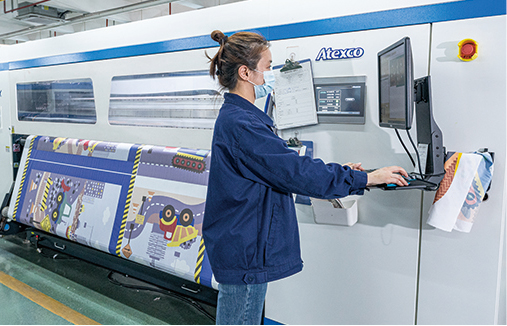 一條印花生產(chǎn)線只需配備2個(gè)工人、節(jié)省人工60%、節(jié)省生產(chǎn)占地面積70%以上